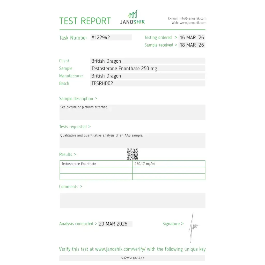 This fast-release version of testosterone by British Dragon is well-suited for athletes requiring rapid hormonal impact with easier post-cycle control.