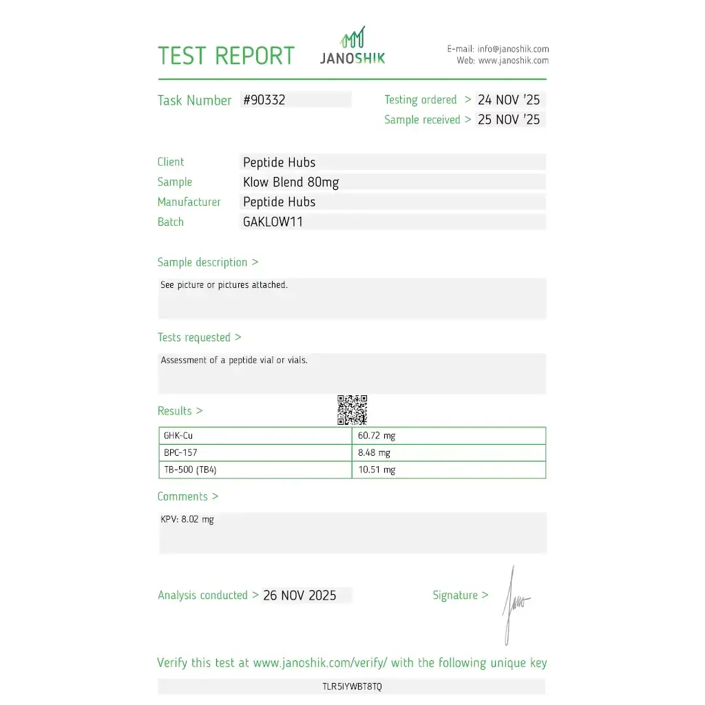 - Active Substance: KPV 10 mg, BPC-157 10 mg, TB-500 10 mg, GHK-Cu 50 mg