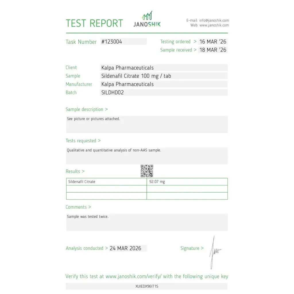 TADALAFIL CITRATE 20 MG TABS Drug Class: PDE5 Inhibitor Composition: - Active Substance: Tadalafil Citrate - Concentration: 20 mg/tab Presentation: 20 tabs Manufacturer: Kalpa Pharmaceuticals